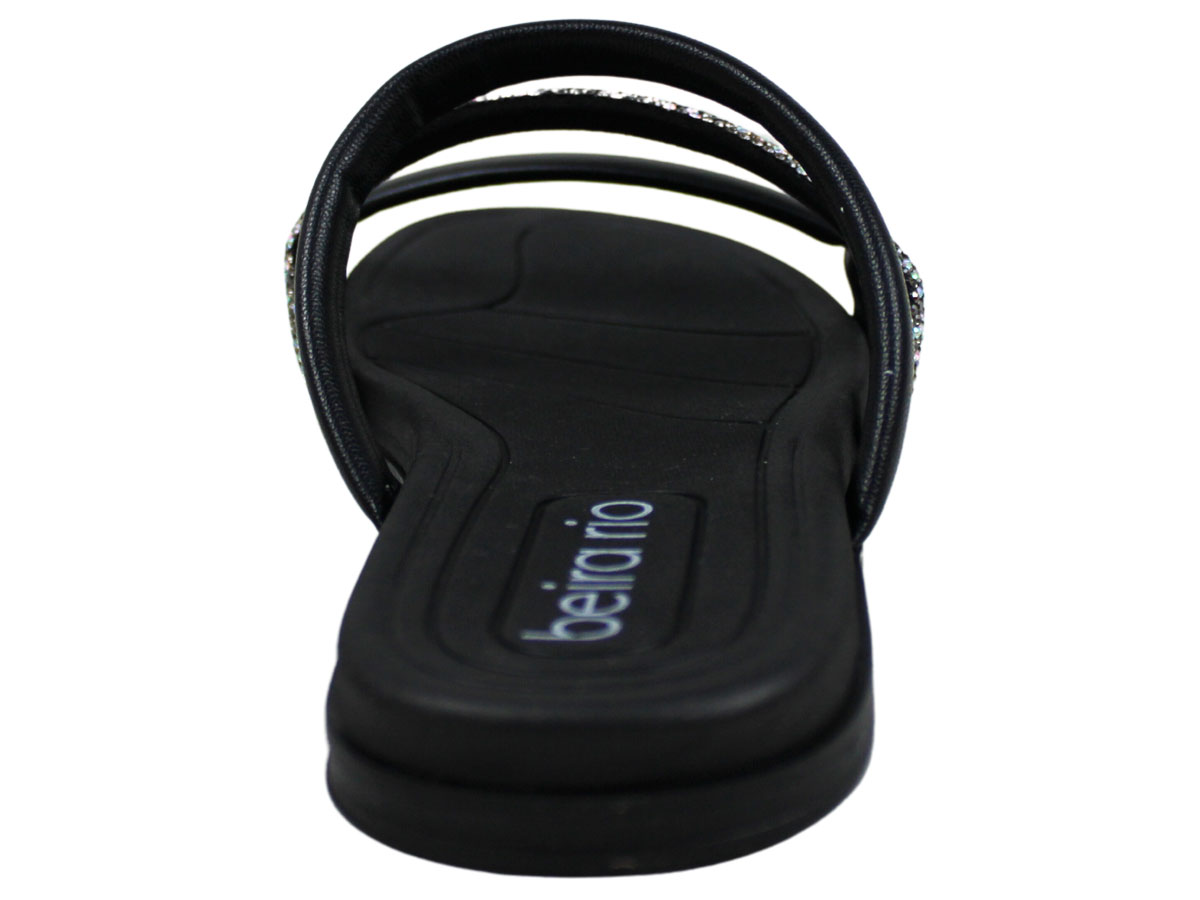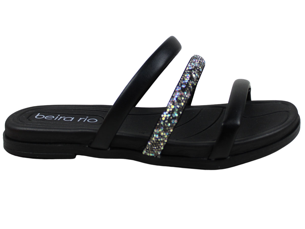 A Sandália Beira Rio é uma combinação de estilo e conforto. Feita em material sintético de alta qualidade, apresenta um cabedal aberto com bico redondo e três tiras frontais, uma delas destacando-se pela aplicação de strass, adicionando um toque de brilho sofisticado. A palmilha macia oferece conforto durante o uso e o solado rasteiro em TR garante estabilidade ao caminhar. Perfeita para complementar visuais casuais e estilosos em dias ensolarados.