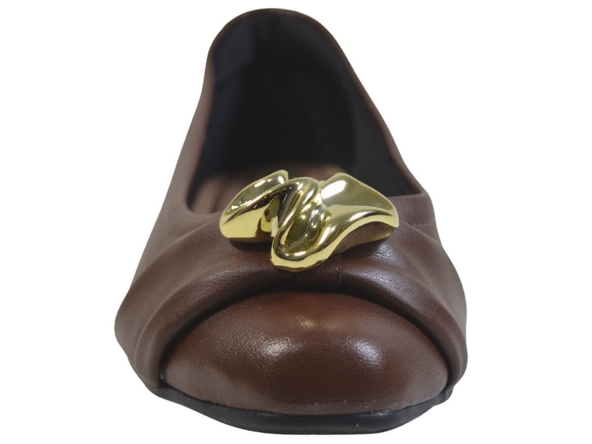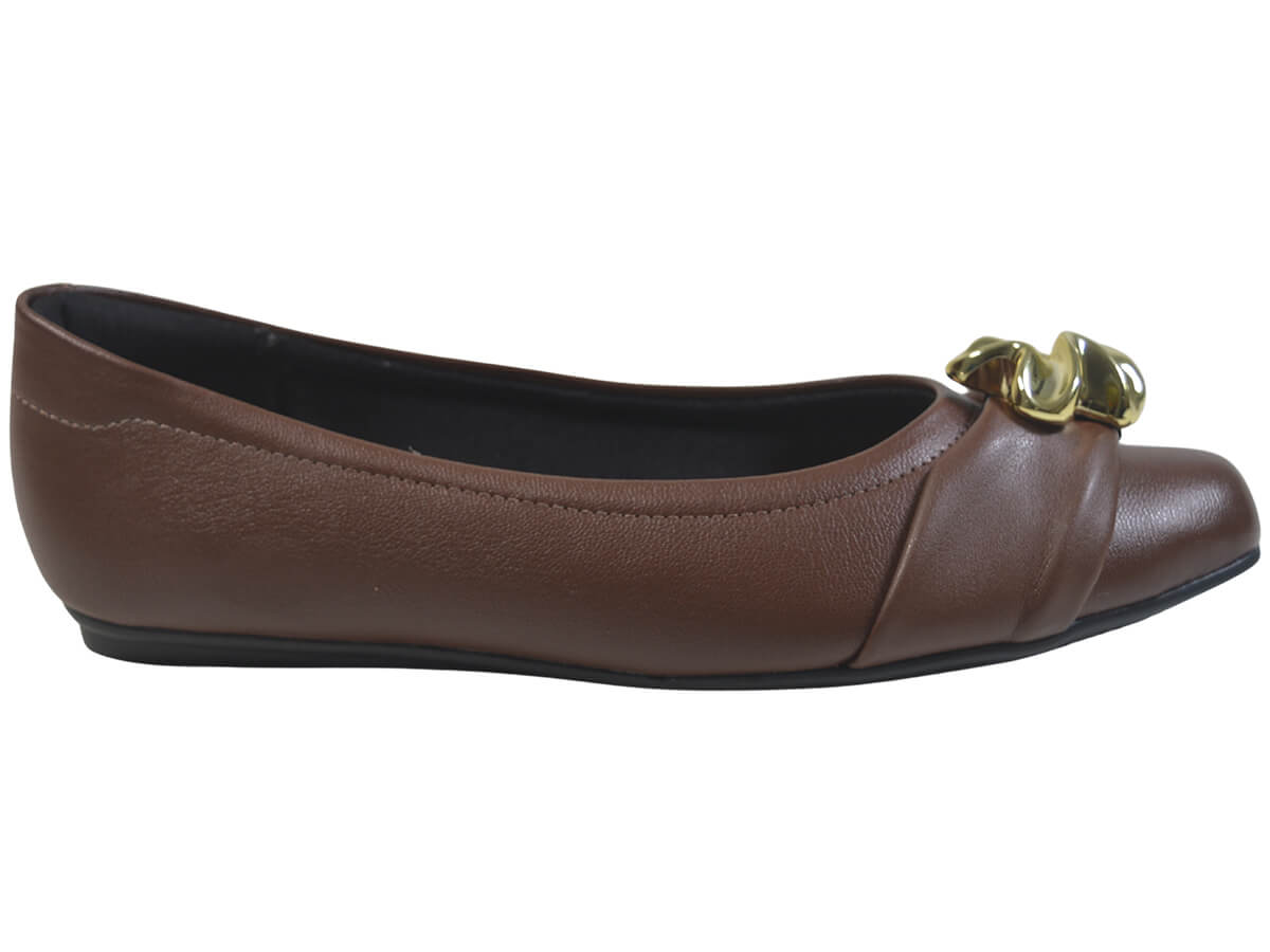 Seu cabedal em napa de toque macio recebe um acabamento refinado com detalhe dourado, que valoriza o visual com um toque sofisticado e atemporal. A palmilha conforto proporciona aquela sensação de bem-estar prolongado que faz toda a diferença no dia a dia, enquanto a bananinha no calcanhar oferece mais sustentação e estabilidade a cada passo.