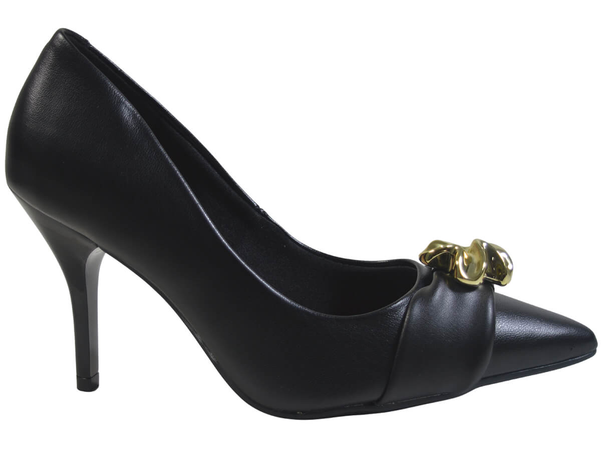 O Scarpin BEIRA RIO com Detalhe em Dourado 9cm oferece um estilo diferenciado, feito de Napa Turim, o modelo apresenta um detalhe elegante em dourado e um salto de aproximadamente 9cm de altura.
